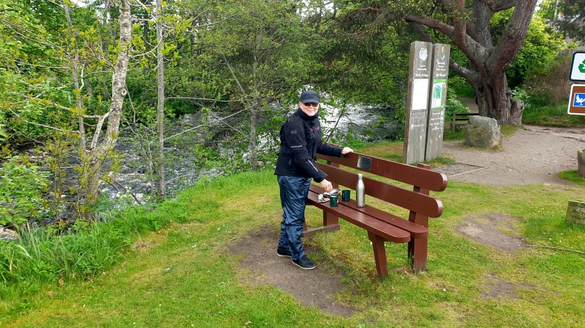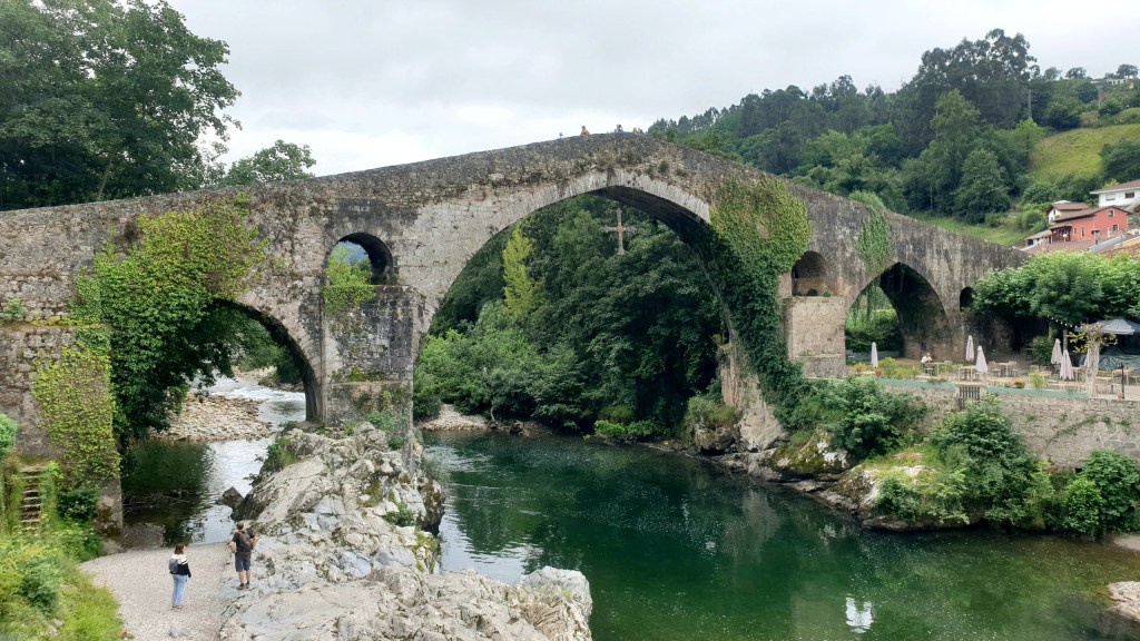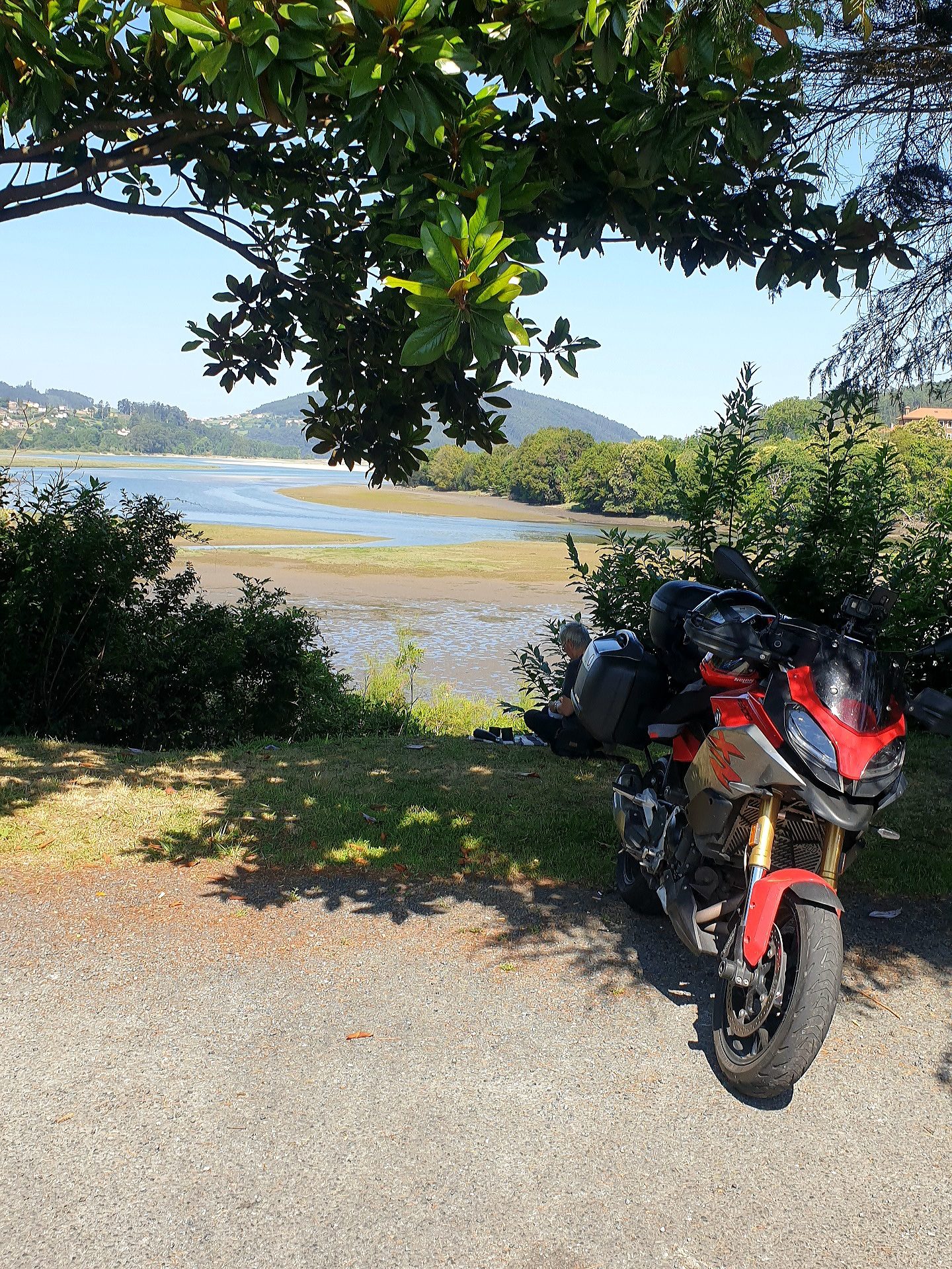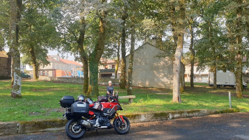However, last night there’d been a storm pass over Cambados, not really enough to cool us there, but it’d given the area east of there a real pasting which was evidenced by all the gutter wash and road litter we encountered as we travised the same area today. But the real score was the lower temps today; we’d been expecting in the order of 40c by midday but it only got to 29c which is a whole lot more bearable. We stopped for a brew – somewhere
